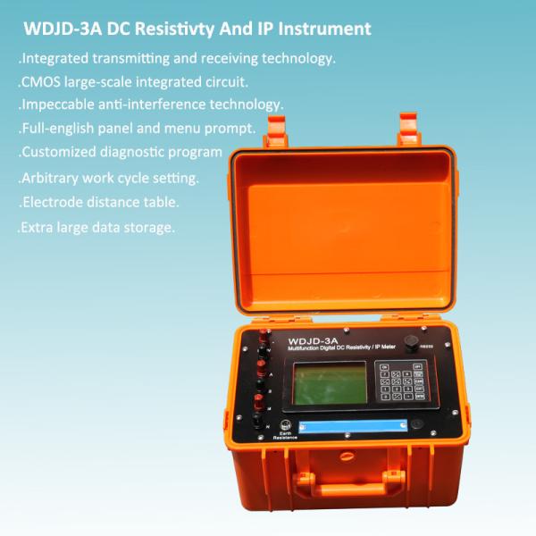 This resistivity and IP instrument is Widely used in metal and non-metal resources exploration, civil geophysical prospecting, railway and bridge prospecting etc, it also can be used in hydrology and engineering geology prospecting such as underground water exploration, dam foundation setting out and dam hidden danger exploration etc. This resistivity and IP instrument can be also applied to geothermal prospecting.